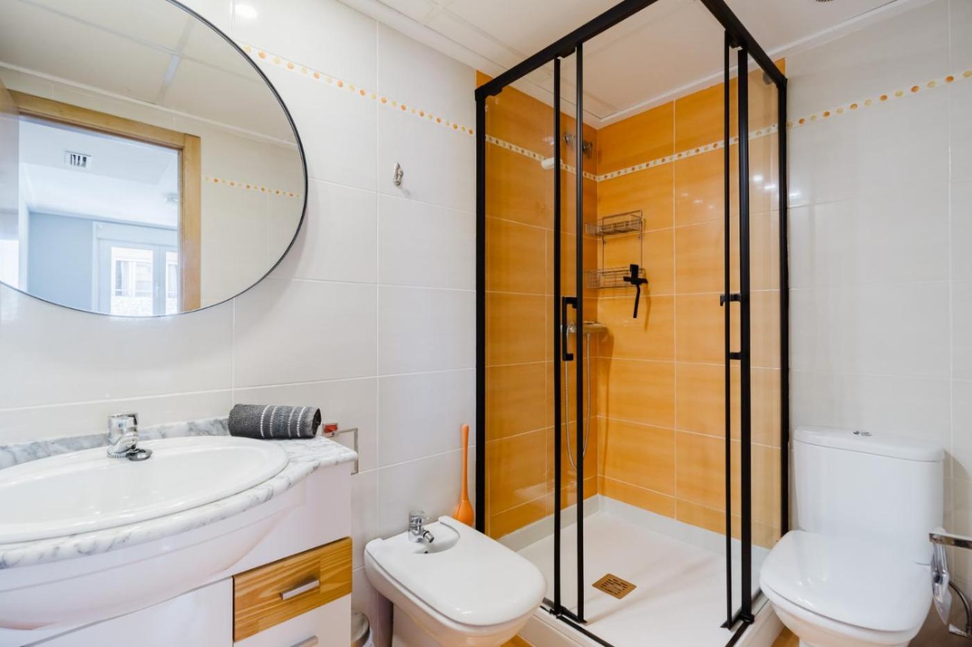 The spacious apartment with a terrace and sea views features 3 bedrooms, a living room, a flat-screen TV, an equipped kitchen with a dishwasher and an oven, and 2 bathrooms with a bidet. Towels and bed linen are featured in the apartment. For added privacy, the accommodation features a private entrance.