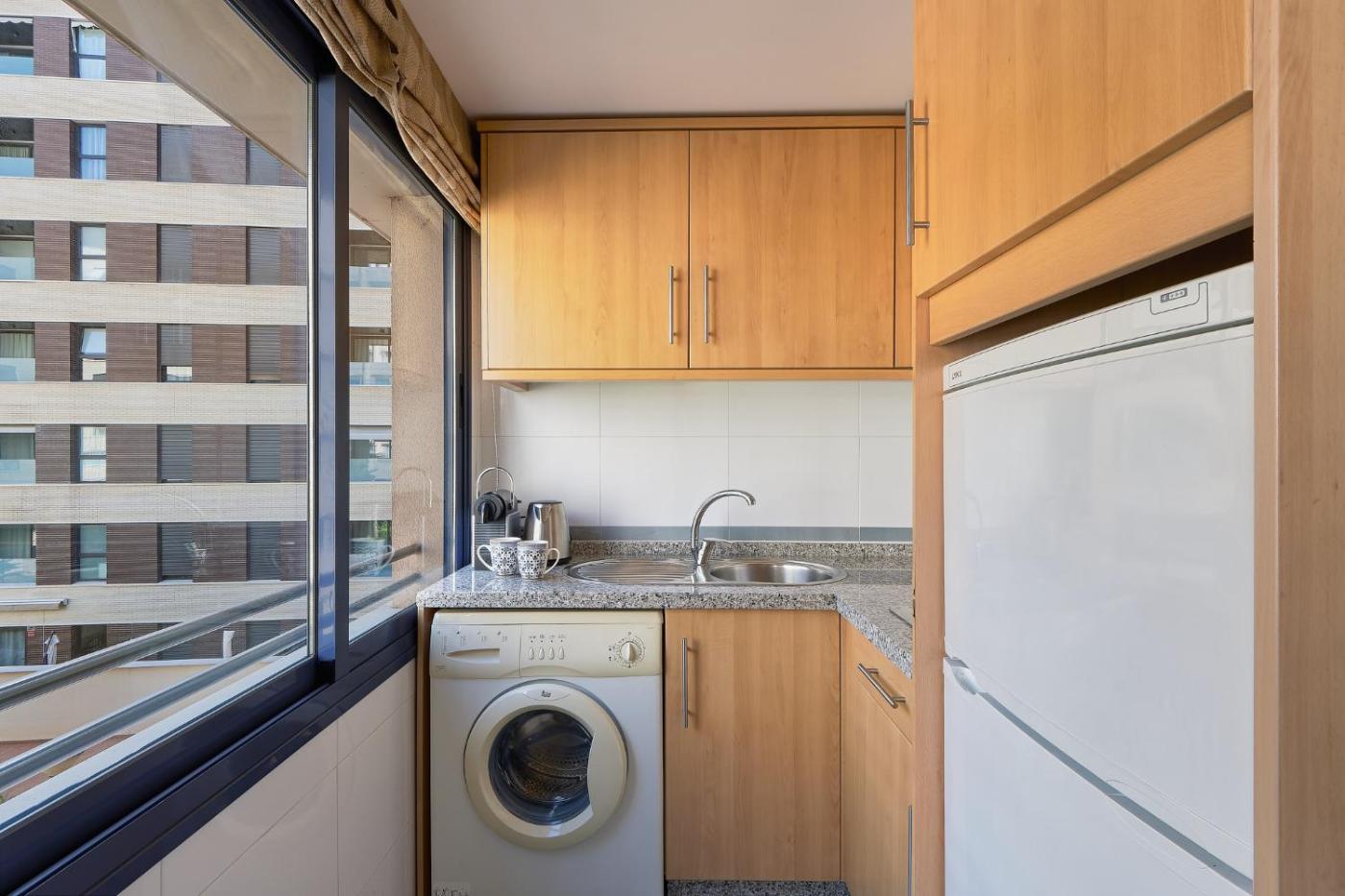 Apartment. This air-conditioned apartment includes 1 living room, 1 separate bedroom and 1 bathroom with a shower. In the kitchen, guests will find a stovetop, a refrigerator and a toaster. The apartment offers a washing machine, a coffee machine, a seating area, a wardrobe, as well as a flat-screen TV. The unit has 1 bed.