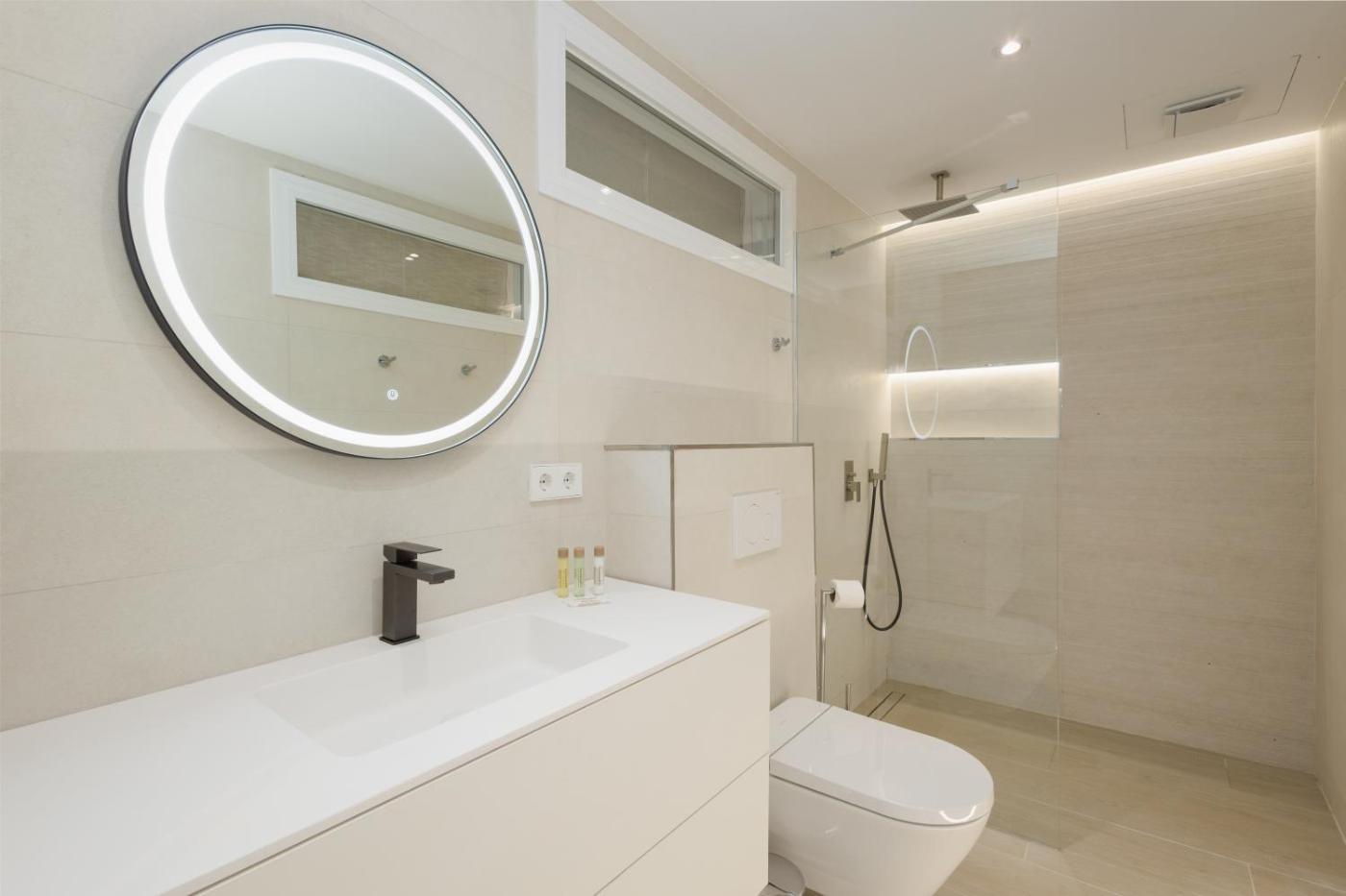Two-Bedroom Apartment. This apartment provides a pool with a view. Boasting a private entrance, this air-conditioned apartment includes 1 living room, 2 separate bedrooms and 1 bathroom with a walk-in shower and a bidet. In the kitchen, guests will find a stovetop, a refrigerator, a dishwasher and kitchenware. The spacious apartment offers a flat-screen TV with streaming services, a washing machine, a coffee machine, a seating area as well as garden views. The unit has 3 beds.