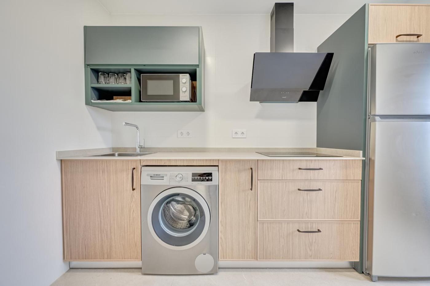 Three-Bedroom Apartment. This spacious apartment is comprised of 1 living room, 1 separate bedroom and 1 bathroom with a shower and a hairdryer. Meals can be prepared in the well-fitted kitchen, which comes with a stovetop, a refrigerator, kitchenware and an oven. This apartment features a washing machine, a coffee machine, a flat-screen TV and a terrace. The unit offers 2 beds.
