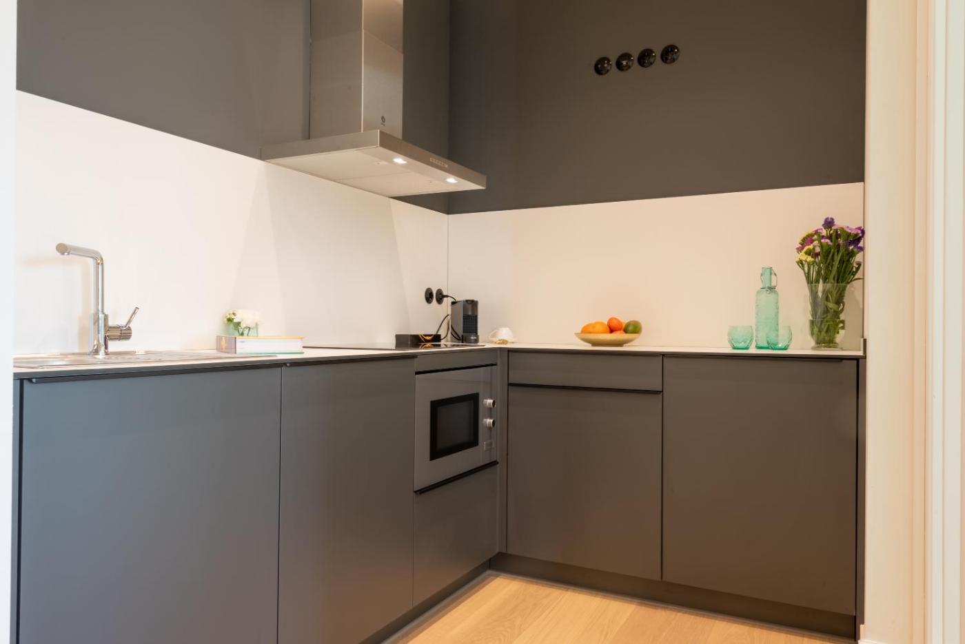 One-Bedroom Apartment. This apartment comprises 1 living room, 1 separate bedroom and 1 bathroom with a shower and free toiletries. In the kitchen, guests will find a stovetop, a refrigerator, a dishwasher and kitchenware. This apartment is air-conditioned and features a seating area with a flat-screen TV, soundproof walls, a tea and coffee maker, a dining area, as well as a wardrobe. The unit offers 1 bed.